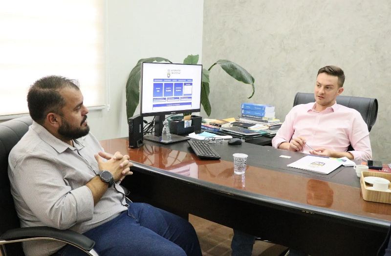 Na manhã desta quarta-feira (03), o vereador Robert Ziemann se reuniu com o prefeito Lucas Foroni para conhecer o novo sistema de agendamento automatizado de consultas e exames implantado na rede pública de saúde de Rio Brilhante.
